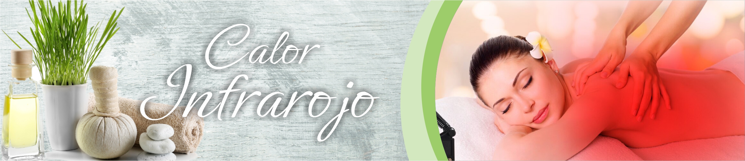 El masaje con infrarrojos es una técnica de administración de calor por irradiación. Los rayos infrarrojos pueden aplicarse de forma local o general, pero exige precaución en el tiempo de exposición para evitar quemaduras. Más que tener un carácter terapéutico, los infrarrojos se utilizan como complemento durante o después del masaje en el tratamiento de dolencias musculares para obtener un efecto relajante y de reducción del dolor.