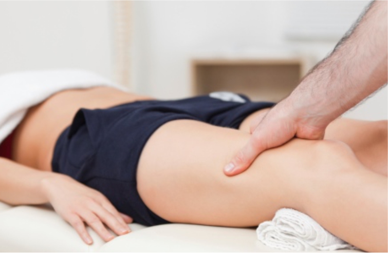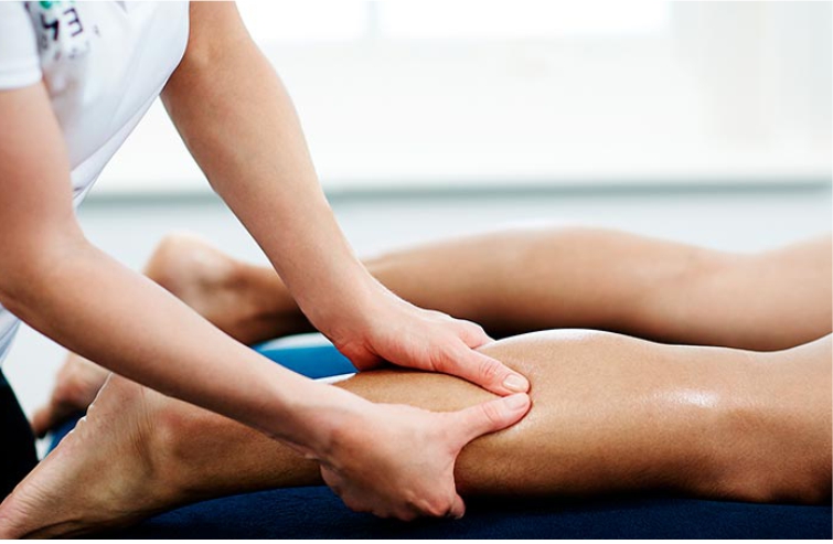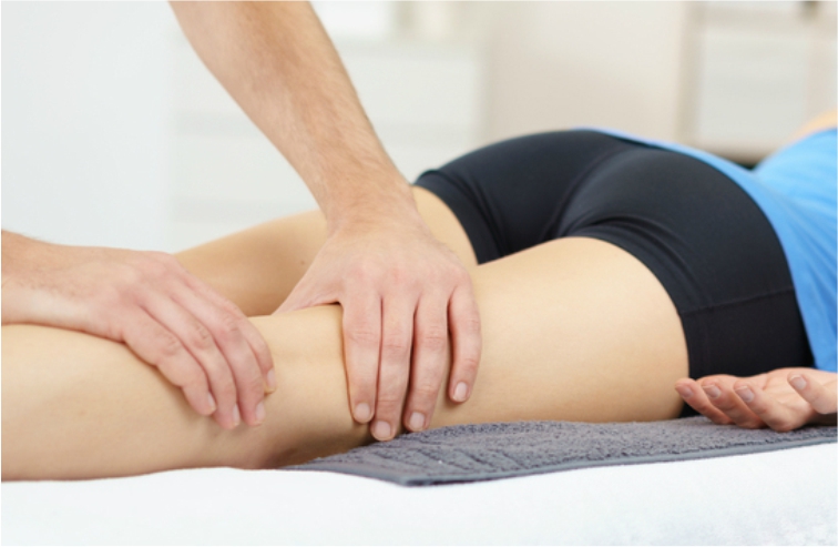 Masaje con manipulación local posterior desde las nalgas hasta los pies y anterior desde los muslos hasta los pies incluido para aliviar la fatiga de las extremidades inferiores.
